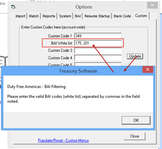 This customization provides for a user-defined white list - that will only allow those transactions with a BAI code on the white list to be imported.