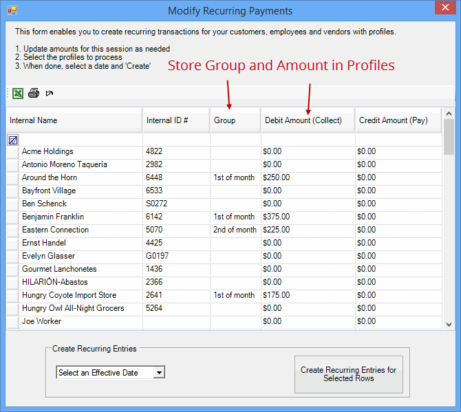 To setup - store the recurring amount within the profiles.
