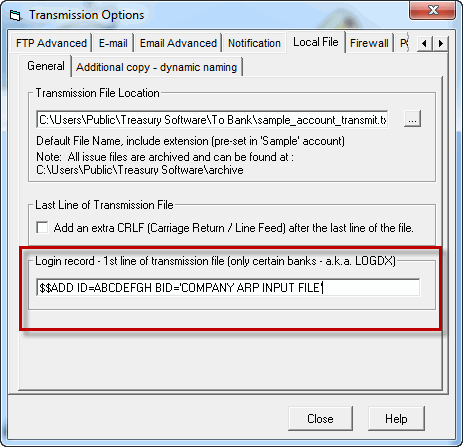 Note if you are using a version prior to 2013. Select File > Options > Transmit To Bank > Local File.